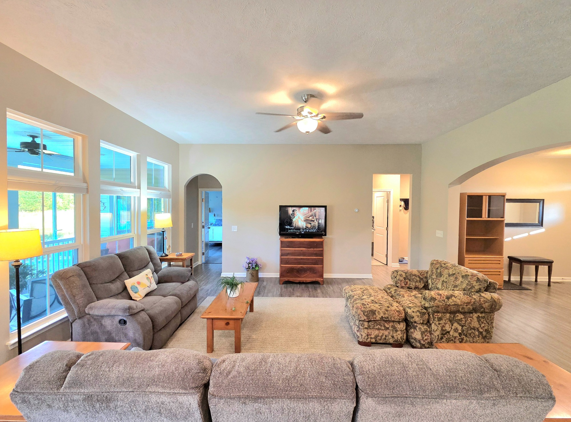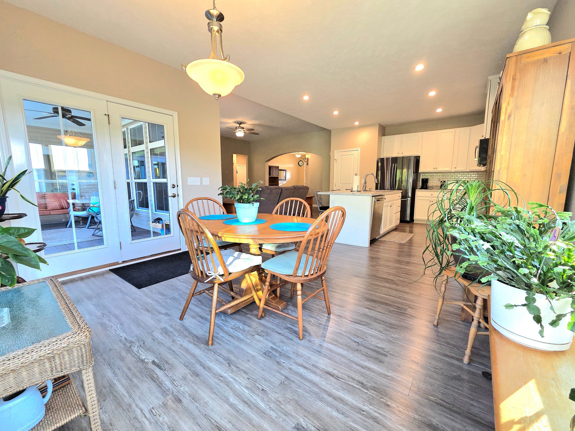 Prepare to be captivated by this 4 Bed/3 full bath Luxury Ranch in Hunting Meadows Subdivision in Columbia Station. Built in 2019, the large, ranch-style home you’ve been dreaming of with a finished basement and private backyard is waiting for its next owner. Exceptional curb appeal, a full-yard irrigation system, and a covered Naturestone front porch welcome you. The true showstopper is the private, fenced-in backyard backing onto a wooded lot. Enjoy the Trex deck and two under-house storage rooms for all your outdoor needs. An elegant foyer introduces the spectacular open-concept layout. The sun-drenched living room with a wall of windows flows seamlessly into the spacious eat-in kitchen, which features a center island, plenty of countertop space, all stainless-steel appliances are included, and an abundance of cabinets for all of your kitchen storage needs. Dining area is also surrounded by windows and opens to the deck and enclosed patio room. The Primary Suite is a sanctuary with a trayed ceiling, a walk-in closet, and a newly remodeled private en-suite with a walk-in shower and double vanity. Two more spacious bedrooms and a separate full bath are thoughtfully placed across the hall for privacy. A convenient first-floor laundry room and mudroom complete the main level. The expansive, finished basement nearly doubles your living space. It includes a massive recreation room with large double door closet, a generous lower-level 4th bedroom, a versatile bonus room/office, and a 3rd full bathroom! Plenty of storage space awaits in the unfinished utility/storage room and a workshop area with large window at ground level. Radon mitigation system thoughtfully installed when built. This home delivers comfort, space, and style. Home Warranty Included! It’s ready for you to move in and enjoy! Set up your private showing today.