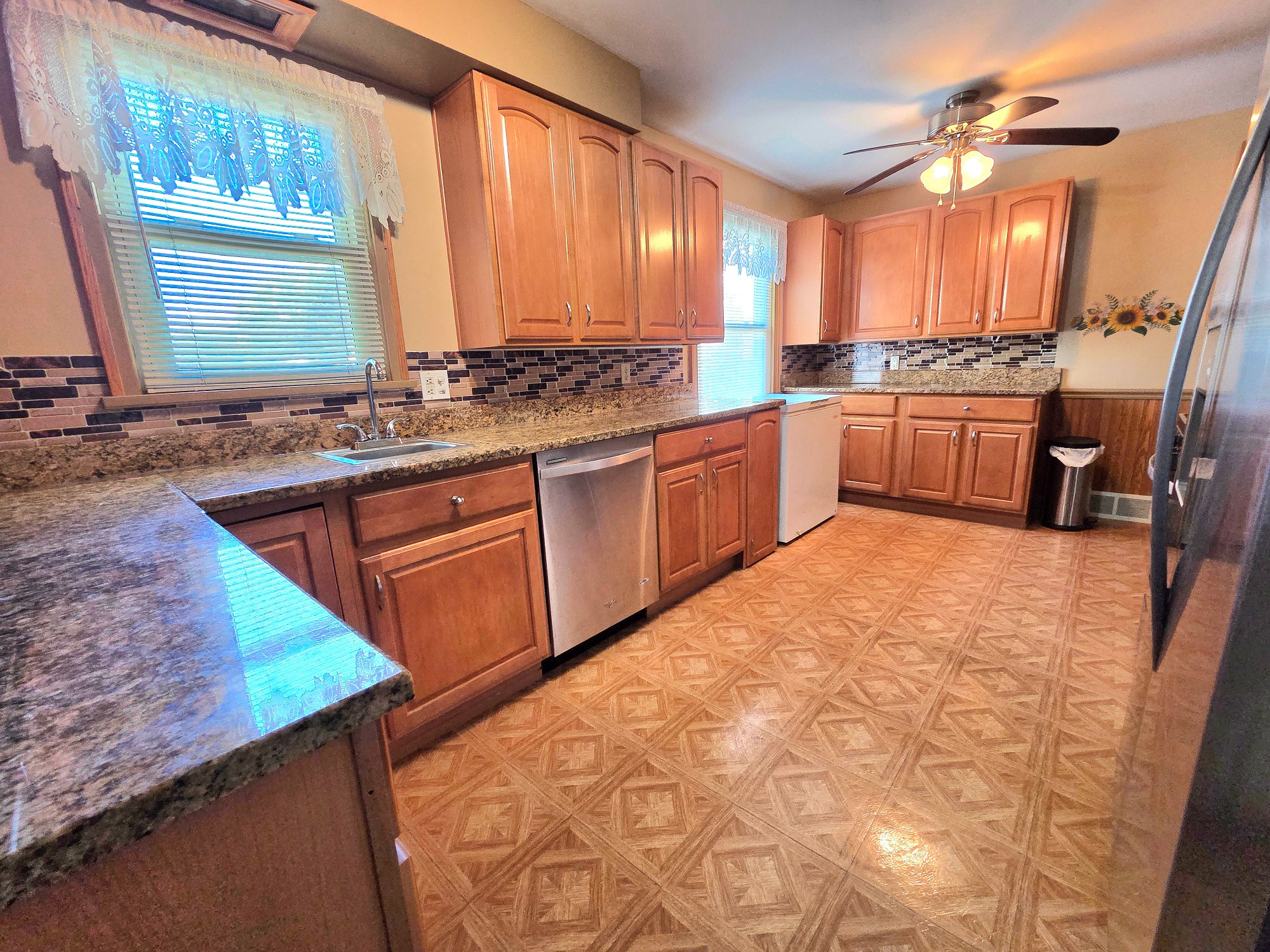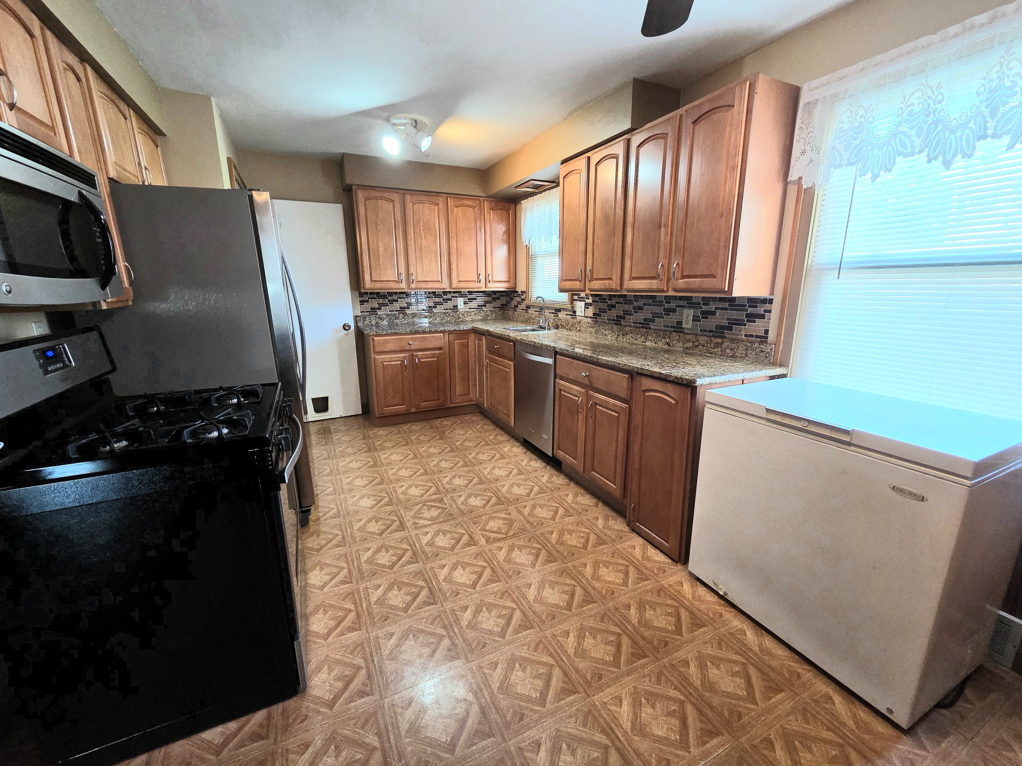 Welcome home to this charming and meticulously maintained ranch home in Newburgh Heights, offering exceptional first-floor living. Tucked away at the end of Brow Avenue with no through traffic, and new playground across the street, this three-bedroom, one-and-a-half-bath residence is move-in ready. The long-term owners of 22 years have thoughtfully updated the property. The front porch features a freshly painted deck and a retractable awning, creating a peaceful spot for evening relaxation. The private, fenced-in backyard with patio is ideal for outdoor activities, with ample space for a playground, pool, or summer barbecues. A one-car garage provides secure parking and storage. Inside, the home boasts a spacious first-floor living room and a gorgeous, extra-large eat-in kitchen. The kitchen is equipped with extensive granite countertops, ample cabinet space, and a suite of stainless-steel appliances that all stay, including a dishwasher, microwave, refrigerator, gas stove, and an additional freezer chest. The floor plan provides privacy with the primary bedroom separate from the two other bedrooms. The finished basement includes a large recreation room (35′ x 11′) perfect for entertaining, a versatile bonus room (13′ x 11′) with a closet ideal for a home office or gym, and a unique half bath. The basement also features a spacious laundry room with storage and filing cabinets, a full walk-in closet under the stairs, and a utility room with a handyman workspace. Additional features and recent upgrades include: 100AMP upgraded electrical panel, Chimney liner (2024), Customizable water pressure reducer (2025), Furnace (2024), A/C (2021), Hot Water Tank (2022), Glass block windows, 6 windows on first floor replaced, Full Duct cleaning (April 2025). Ample storage with a closet in every room! For extra peace of mind, the sellers are including a one-year limited home warranty.