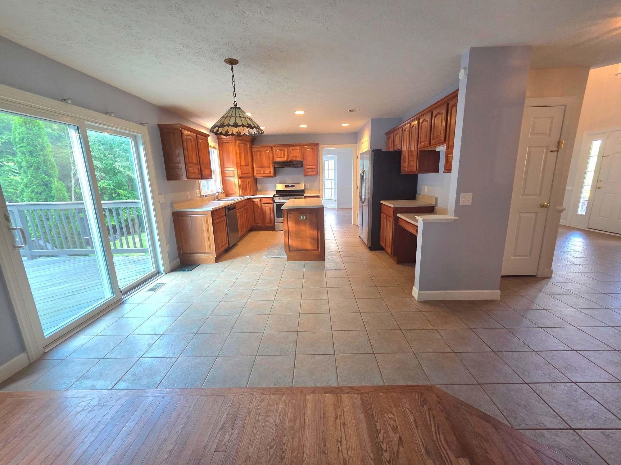 Gorgeous large Colonial style home located in the highly sought-after Lexington Ridge community of Medina, which has a private neighborhood pool, playground, & clubhouse! This stunning 4-bedroom, 2.5 bath Colonial offers an exquisite blend of elegance and comfort. Step inside the grand two-story foyer with its beautiful wrapping staircase. To your right, a versatile family room/office with French doors seamlessly connects to the formal dining room, boasting double bay windows and abundant natural light. To your left, a convenient half bath that leads to the family room. The heart of the home is the chefs eat-in kitchen, featuring a large island, stainless steel appliances, a gas stove, and a convenient pantry. Featuring ALL NEW Frigidaire Galley Stainless Steel Kitchen Appliances and carpeting just added in September! Perfect for entertaining, the enormous family room with hardwood floors and a cozy gas fireplace flows effortlessly to a private wood deck overlooking the serene, fenced wooded backyard. Upstairs, the expansive master suite provides a luxurious retreat, complete with a sprawling walk-in closet and a private full bath with dual vanities. Three additional spacious bedrooms share a well-appointed full bath. The lower level offers incredible potential with a huge walk-out basement, ready for your personal touch and leading to a charming brick patio. A convenient first floor mudroom/laundry room with a wash tub connects to the attached two-car garage. For peace of mind, a one-year home warranty is included.